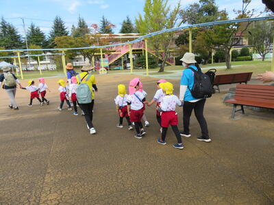 ちゅうりっぷさんとたんぽぽさんがグループを作って一緒に回りました。ちゅうりっぷさんがしっかりリードしてくれました。