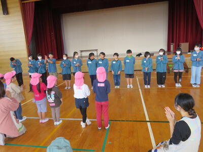 2023年11月8日 08時33分ちゅうりっぷさんは佐倉小学校5年生との交流を、体育館で行いました。