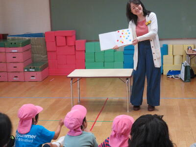 本の読み聞かせもたくさんしていただきました。みんな真剣に見入っていました。