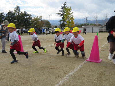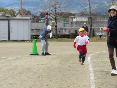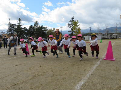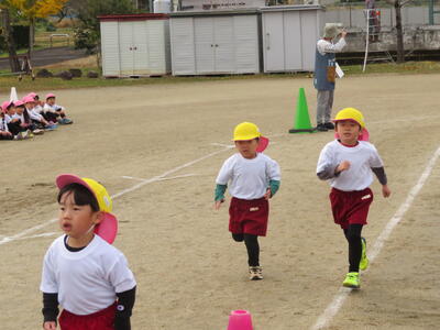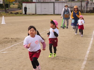校庭に移動し、いよいよ本番です。まずはちゅうりっぷさんが3周走りました。