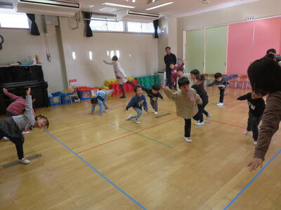 次はみんなでダンスです。難しい動きもありましたが、こちらも大きくなった皆さん、上手にできました。