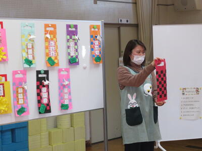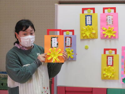 自分たちで作った千歳あめ袋の紹介です。