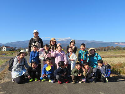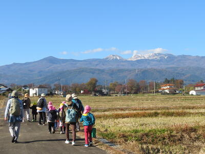 園を出発したら、吾妻山がとてもきれいだったので、みんなで写真撮影。