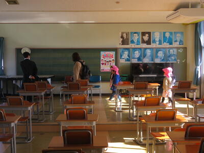 いよいよ校舎の中へ。校長先生が案内役をしてくださいました。