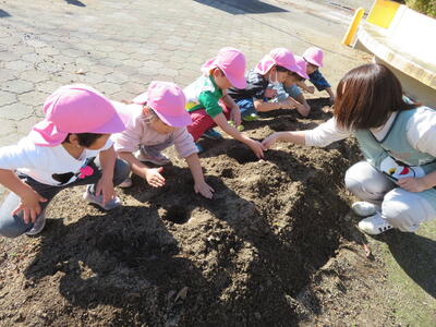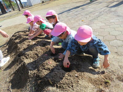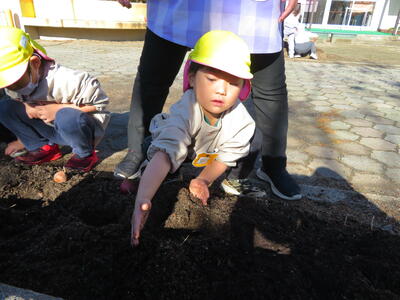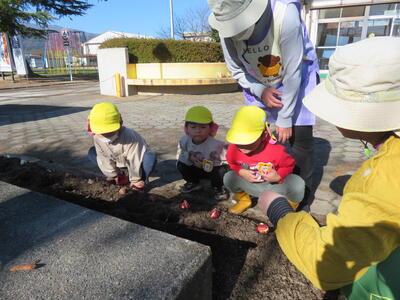 チューリップの球根うえをしました! 2023年11月21日 12時46分 午前中、みんなでチューリップの球根うえをしました。 たんぽぽさんは黄色の、ちゅうりっぷさんは赤色の球根です。 春になったらきれいに咲くことでしょう。