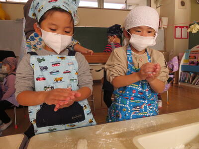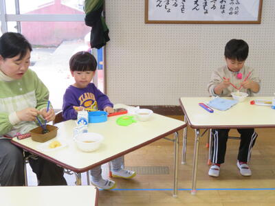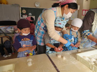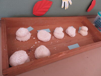 2023年12月1日 14時38分保育室に戻って、鏡餅づくりをしました。