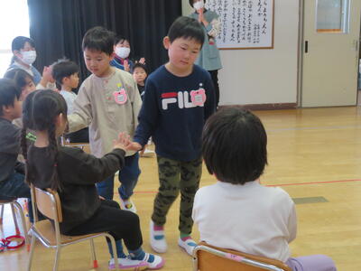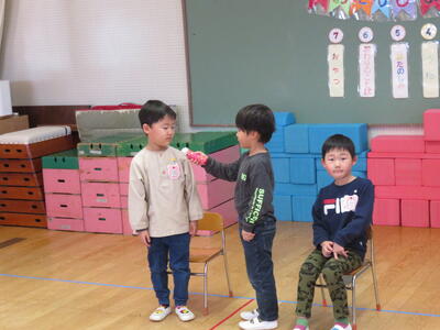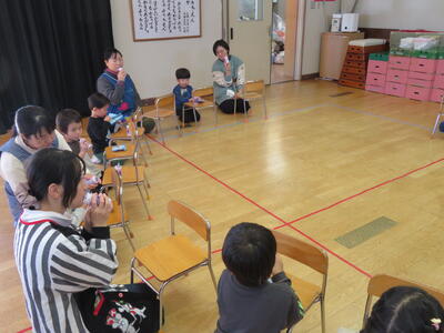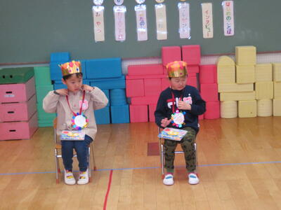 誕生会が終わり、年長さんから年少さんに係の引継ぎをしました。2月の誕生会はたんぽぽさんが係の仕事を行います。たんぽぽさんは意欲満タンでした。