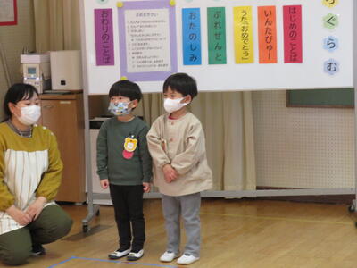2024年2月2日 13時10分今日は「豆まき誕生会」を行いました。