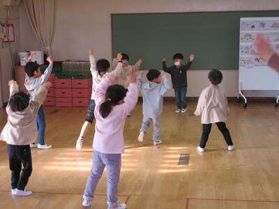 歌の後はいつもの準備体操です。こちらも元気いっぱいな子どもたちでした。