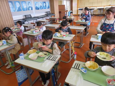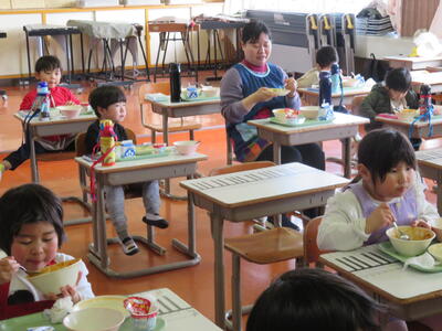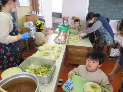 「おいしい おいしい」あっという間に食べ終わり、おかわり続出でした。