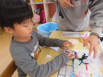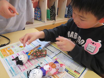 ちゅうりっぷさんの学級では、雛人形づくりが進んでいます。