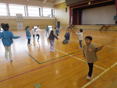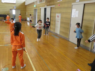 そのあと、体育館へ移動し、縄跳びを一緒になってもらいました。