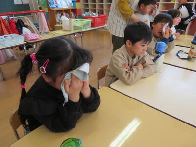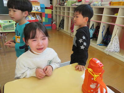すると,何やら園児達の鳴き声が聞こえてきました。それも一人や二人ではなく何人も。