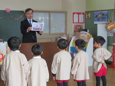 はじめに,園児達の成長の姿を話しました。4月からは年長さんです。きっとしっかり頑張ってくれることと思います。