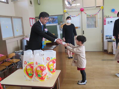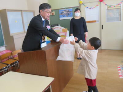 記念品を渡しました。年長さんになったら使ってください。