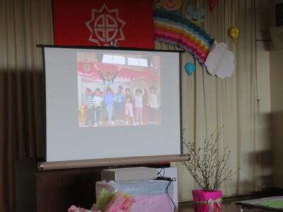 開式の前に,思い出の映像をお家の方と一緒にみました。
