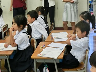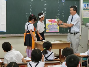 2016年9月30日 20時17分 1年生国語科「サラダでげんき」の単元で授業研究会を実施しました。登場人物の行動を中心に,想像を広げながら読むことがねらいの授業です。登場人物の動きを動作化することを通して,言葉の意味を考えることができました。児童は,初めてたくさんの先生方に囲まれて,初めは気持ちが高ぶっていたものの,次第に学習に集中していきました。本校は,平成29年度福島市教育委員会委託研究指定校になっています。この機会を生かして,学習指導の改善のために今後も授業研究会を重ねていく予定です。