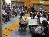 2016年10月2日 09時42分 昨日から開かれている信陵地区文化祭に合奏部が参加します。10月10日に東京都府中の森芸術劇場で,東日本吹奏楽コンクールに参加する本校の合奏部は,信陵地区の方からたくさんの支援をいただいています。その支援に感謝の気持ちをこめて6曲を披露する予定です。今日は朝早くから練習を頑張っていました。