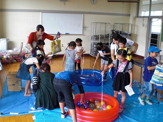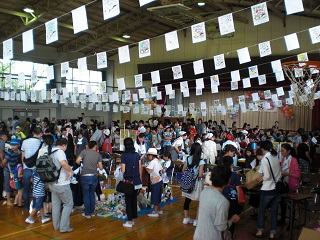 今日はこの「ささっこまる」と「ささひめちゃん」をシンボルにして,たくさんの人がゲームコーナーで遊んだり,バザーを楽しんだりと盛り上がりました。