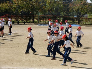 授業の初めは,運動感覚を養い, 体力・運動能力の向上に結び付けることのできる運動に取り組みます。スキップ , カニ走り, カンガルー跳び, バック走, クロスステップなど屋外プログラムメニューを楽しそうにやる3年生を見て,とてもうれしく思いました。