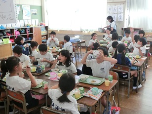 この納豆,かき混ぜるほどアミノ酸と甘味成分が増えるといわれます。かの美食家・北大路魯山人も、著書『春夏秋冬料理王国』の中で、「納豆を美味しく食するポイントは、ドロドロになるまで400回練ること」と記しています。ちょっと小学生が400回もかき混ぜるのは難しいことですが,おうちでの経験もあるのでしょう,小さい児童も上手にかき混ぜて,おいしそうに食べていました。