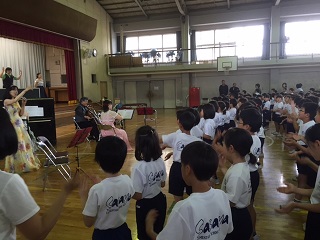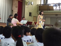 鑑賞教室 2016年6月28日 13時28分 今日の出来事 未来ふくしま芸術創造アカデミーの方を迎え、鑑賞教室を実施しました。クラシックだけでなく、子どもたちがよく知るアニメの曲なども交えて、楽器による演奏や美しい歌声などを鑑賞することができました。
