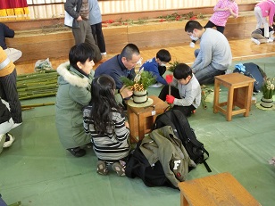 親子で協力し合って,竹を切ったり,飾りをつけたりとして思い思いのミニ門松が出来上がりました。この門松を飾って,ご家庭に歳神様を迎え,よい年を迎えられることを願っています。