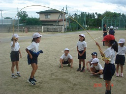 縦割り清掃が始まり,1年生から6年生までの班ができました。50班とかなり多い数ですが,異年齢の交流活動の効果を期待して取組を始めています。今日は,お昼休みに班長の6年生が中心となって一緒に遊びました。6年生は予め,小さい子のことも考えて遊びの内容を決めていました。この交流は,明日も実施する予定です。