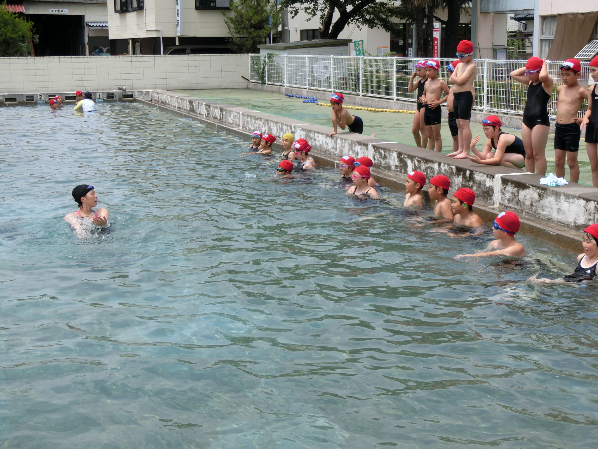 2018年7月4日 18時42分7月2日と3日は体育専門アドバイザー来校日。この2日間は、1年から6年まで全学年の体育の授業にアドバイザーの齋藤先生が学習支援に入りました。低学年は水遊び、中・高学年は水泳の学習で、けのびやバタ足の模範泳法や平泳ぎの技術指導など熱心に指導していただきました。体育専門アドバイザーの先生には6月にもおいでいただきましたが、動きのポイントを自ら演示したり、個別にアドバイスしたりときめ細かなご指導をいただいております。次回は2学期に来校予定!楽しみです。