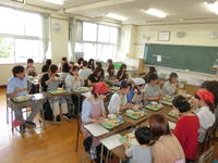 2019年7月5日 11時59分 教養委員会主催のPTA教養講座「ヨガ講座」のあとは、給食試食会が行われました。この日は、4年生が摺上川ダムと浄水場の見学学習でしたので、試食会の会場として4年3組の教室を借りての実施でした。参加者は保護者のみなさま29名!
