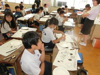 2019年7月5日 12時01分 6月20日(木)に管理栄養士で栄養教諭の本田優子先生を講師に招いて、4年生を対象に食育教室を行いました。テーマは「元気になる食事」です!まずは、子どもたちみんなで大好きバイキング!とは言っても、本物の料理が並んでいるわけではなく、配膳台の上にたくさん並んだ料理カードを選んで、自分の紙皿の上にのせていきます。次に、自分で選んだ料理を「赤色」「黄色」「緑色」の3つのグループに分類!そのあとで本田先生から3つの食品群の名前と働きについての説明を聞いた子どもたちは、自分の選んだ料理をそれぞれの食品群にしたがって分類し、問題点を見出します。「黄色の料理が多すぎるな...」「ごはんもパンもあるぞ。炭水化物の採りすぎかも」「ぼくは野菜をたくさん選べたよ!」など、自分で選んだ料理のよい点や問題点を発表し合った子供たち。授業の最後には、これからの自分の食事のめあてを立てることができました。