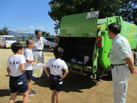 また,実際にごみ収集車を目の前にし,各自持参したごみを投げ入れると,回転してごみが車の中へ!「こんなふうにごみを集めているなんて知らなかった。」と子どもたちからは大きな歓声が挙がりました。