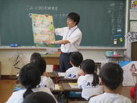 2019年10月14日 11時15分 4年生は,社会科で,ごみの処理や環境問題について学習しています。9月19日(木)に,福島市環境課環境企画係の小室さん,ごみ減量推進課清掃指導係の髙野さん,丹野さん,横山さんを講師にお招きし,クールチョイス・ごみ分別体験教室を行いました。
