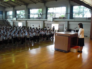 2016年7月20日 12時50分 第1学期終業式を無事に迎え,今月期の中で特によくできたことを振り返りました。そして,休業中において事故の無いように過ごすための注意点もしっかりと指導しました。