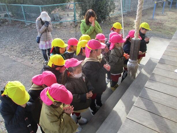 続いて、熊野神社に初詣をしました。そっと聞いてみたら子どもたちは「家族の健康や長生き」などお願いしていました。やさしいね!