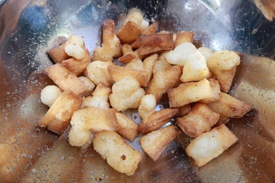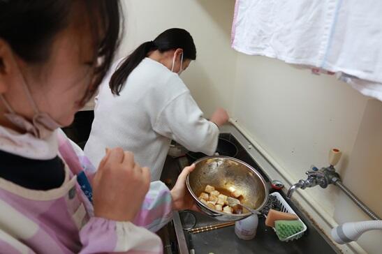 1月11日(木)鏡開きした鏡餅を、油で揚げておかきや濡煎餅にして食べました。お供えした鏡餅の最後の一欠片も無駄にしないでいただきました。調理はプロの腕前の奈百美先生です。