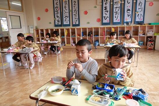 1月12日(金)昨日かがやきファーム(園畑)で収穫したダイコンを使った、福島の郷土料理「ひきな炒り」をいただきました。