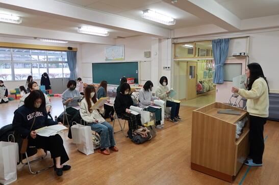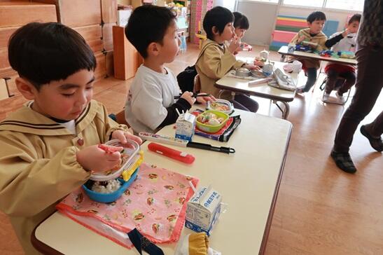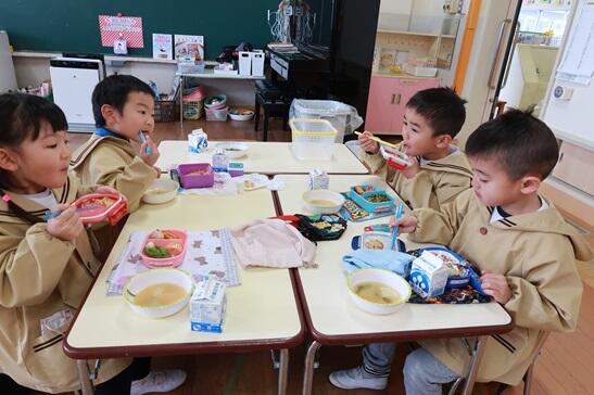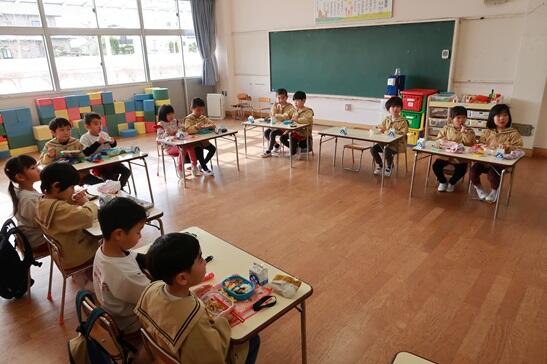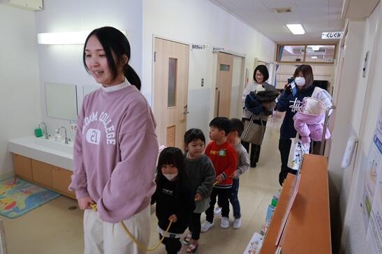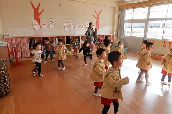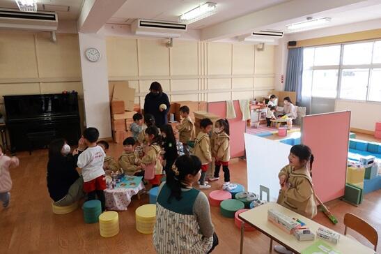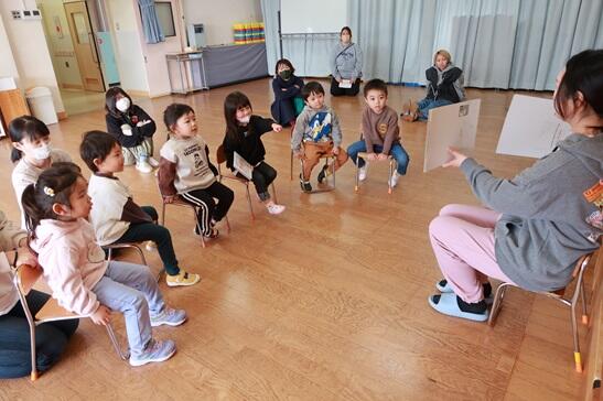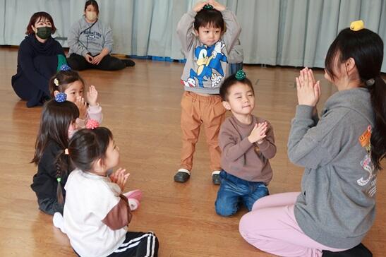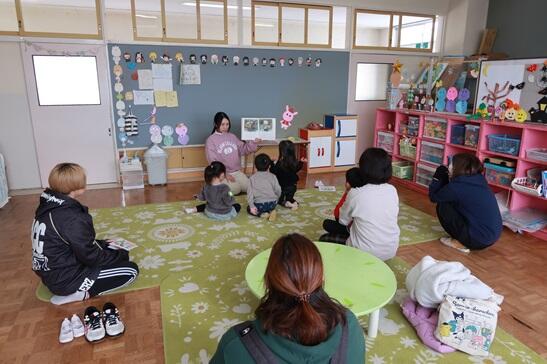 後半は暖かいすみれ組の教室で、仲良く手遊びをしたり、絵本の読み聞かせを聞いたりして楽しく過ごしました。