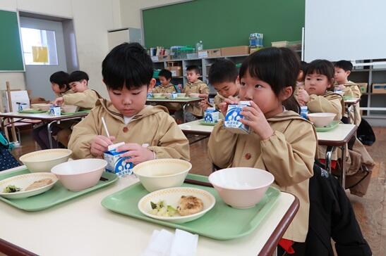牛乳冷たくて美味しいね!ご飯や味噌汁は温かいね!