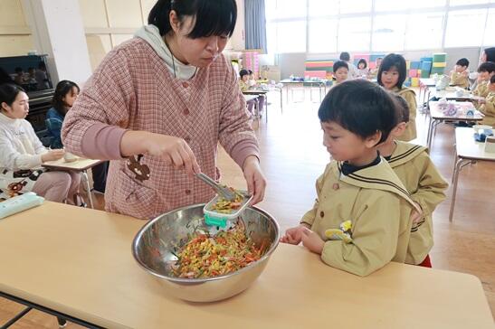 子どもたちはこの劇に出てくるりっちゃんサラダを作ってみることになりました。