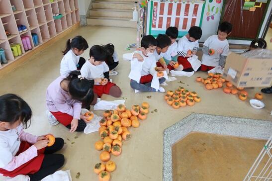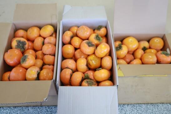 11月24日(金)、20日(月)の焼き芋会の時に、焼き芋のお裾分けをした近所の渡辺さんから、たくさん柿が届きました。
