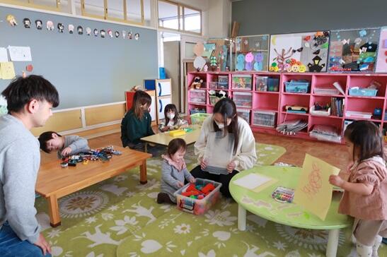 愛果先生がお休みなので今回は佳子先生です。遊戯室の中で好きな遊びを楽しくしています。