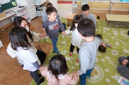 佳子先生の手遊びに、みんな楽しく取り組んでいます。