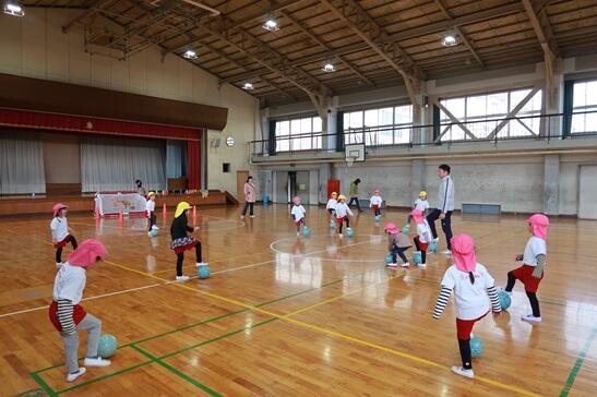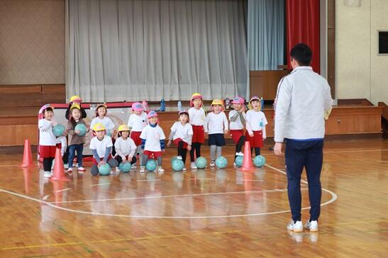 最初はサッカーボールとお友達になることから、子どもたちは今年度3回目ということもあり上手に出来ています。