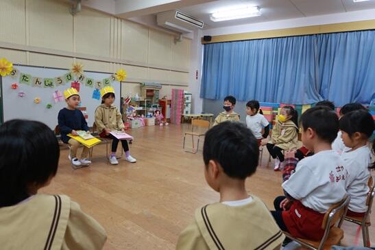誕生日の歌を歌ったり、インタビューをしたりして、みんなで楽しくお誕生会をしました。