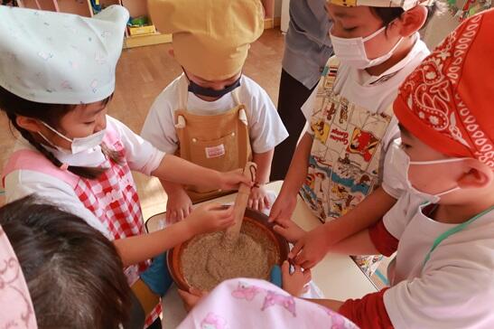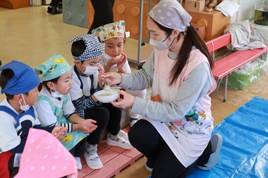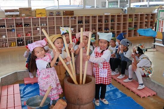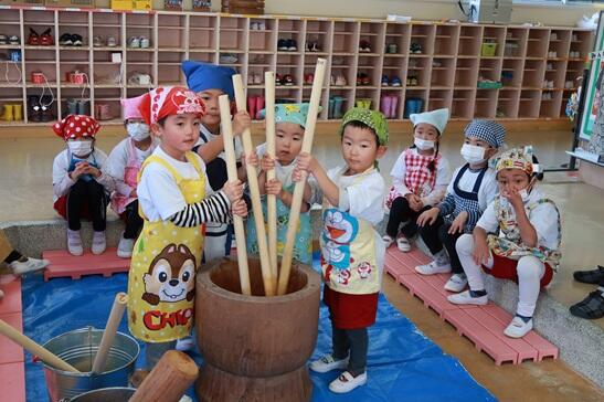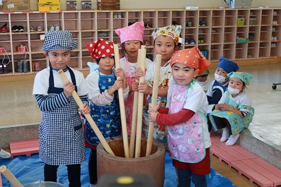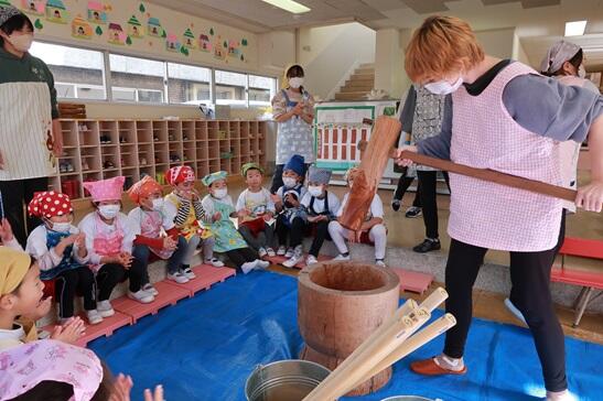12月1日(金)はALTのルーシー先生の来園日、一緒にもちつき会を行いました。