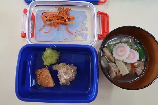 ルーシー先生は、4種類の餅といか人参完食です。初めての餅つき楽しかったようです。