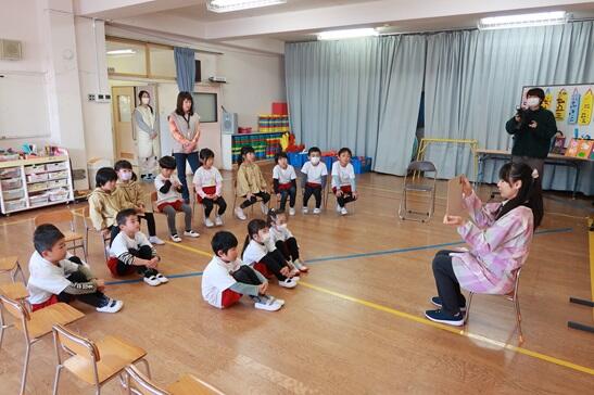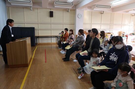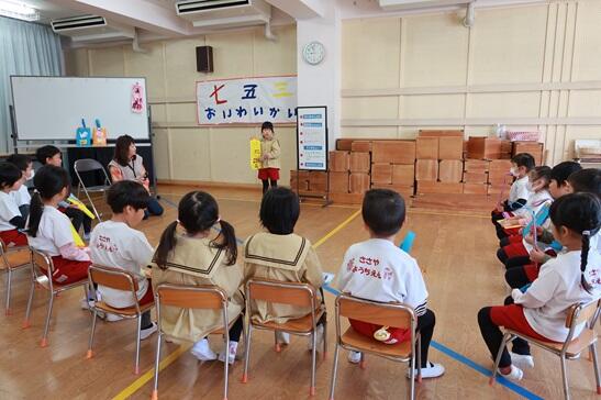 最初に園長先生から、子どもたちの健やかな成長を願う行事として行われてきた七五三についての話がありました。