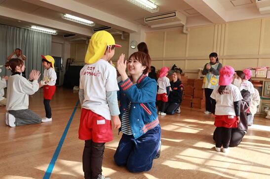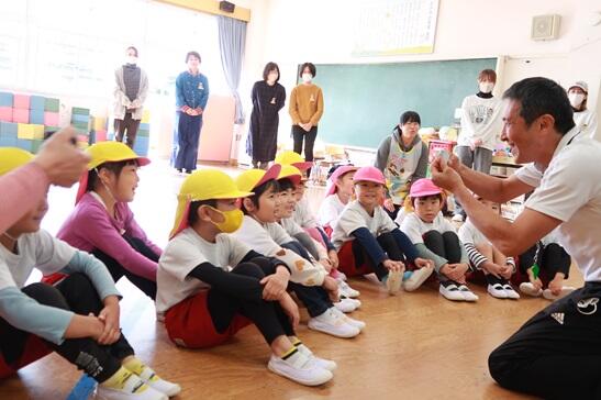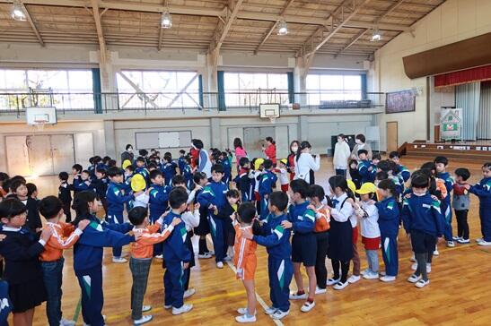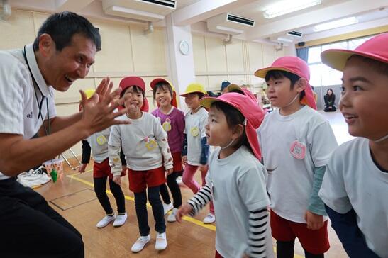 次に、笹谷小学校の1年生と園児で楽しく遊び交流を深めました。