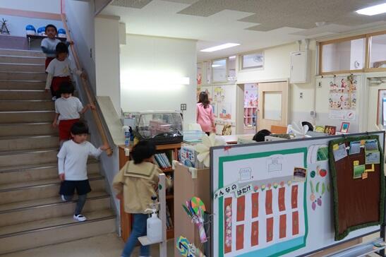 2階からの避難も、押したり走ったりしないで上手に出来ていました。